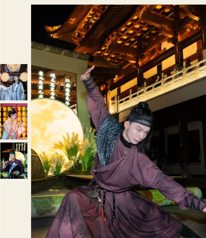杜甫江阁仅四层建筑,如何在有限空间内实现沉浸式体验的最大化?我们创新提出“破除场次概念”,将演出改为节目循环模式,有效增强了主力节目的密度,让游客能够随时“入戏”。