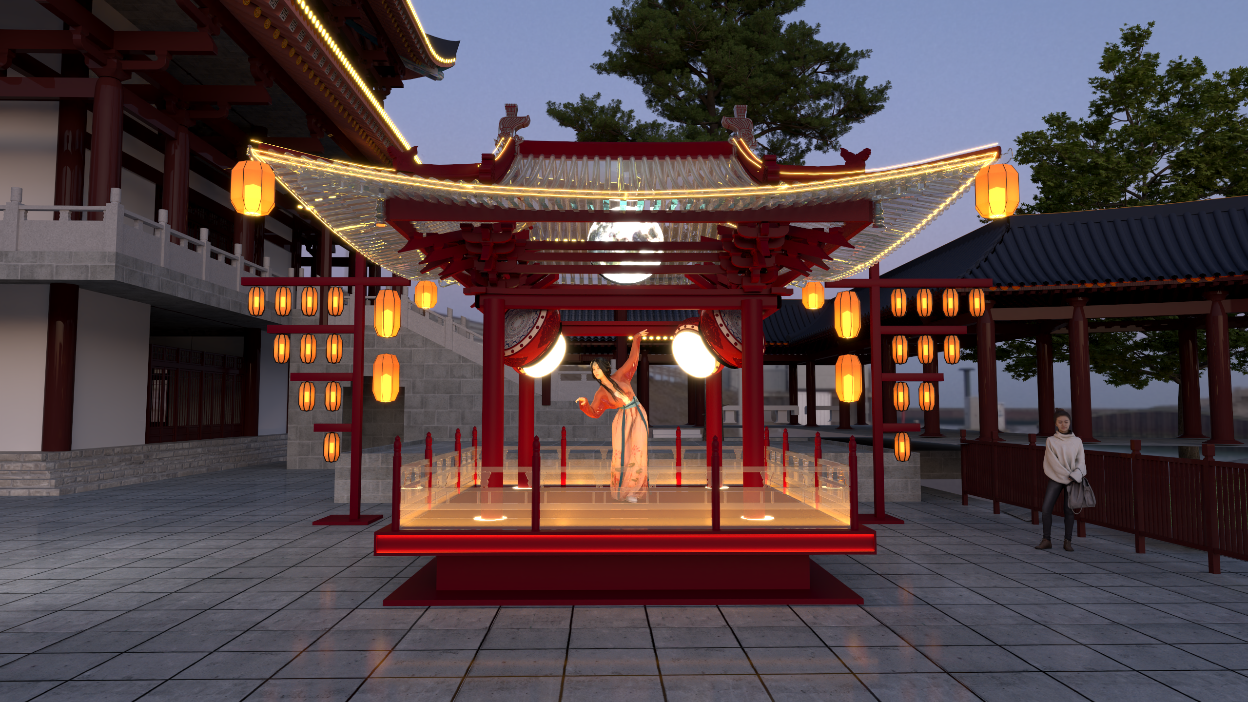飞檐斗拱、唐风灯笼,流光溢彩写意东方美学。
