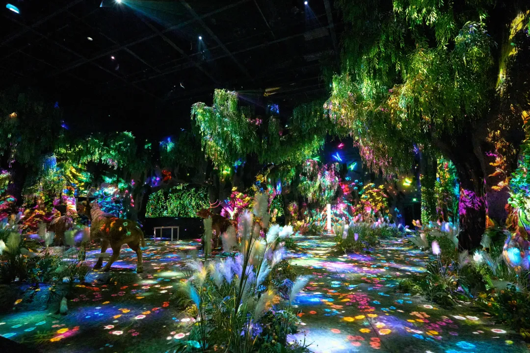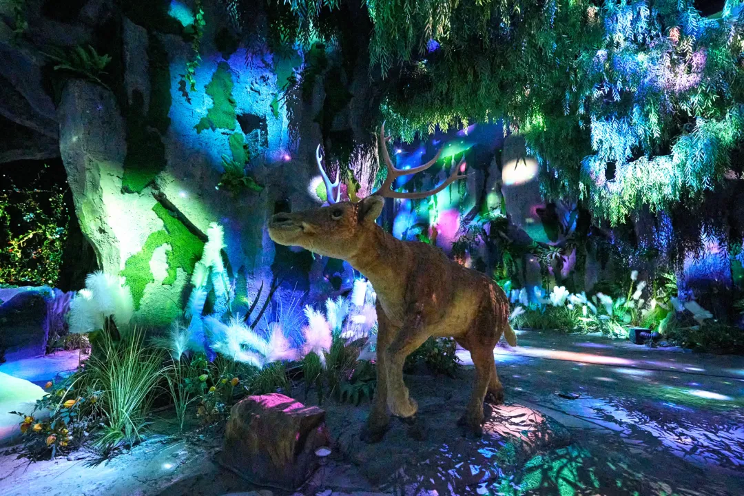 麋鹿剧场则通过创新融合自主研发的叠影投息与AR眼镜空间定位技术,生动再现麋鹿穿林的洞庭湖湿地风光。