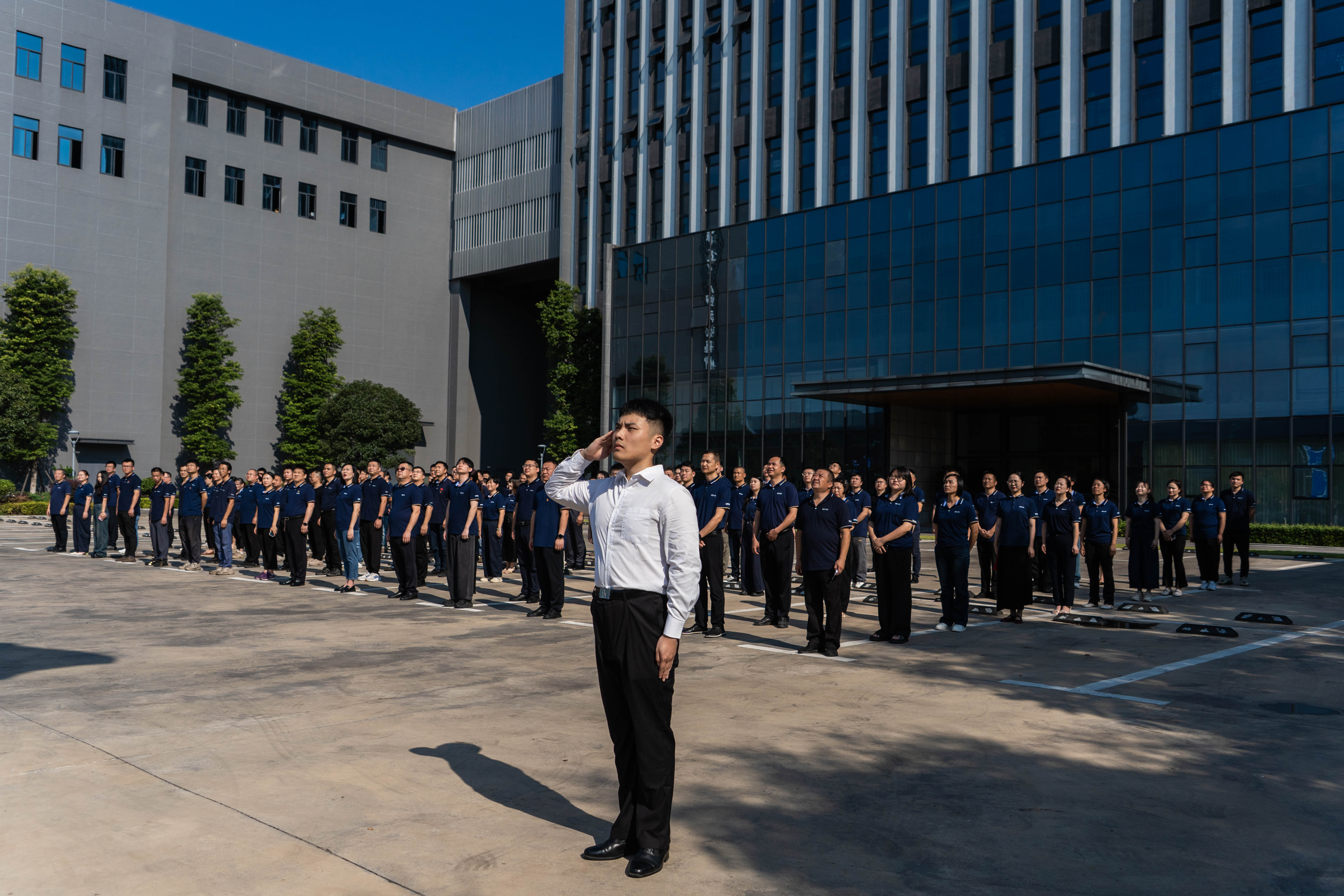 活动伊始,所有参与成员身着整齐工装,身姿挺拔地列队肃立。伴随着庄严雄壮的国歌声,3名护旗手昂首挺胸、阔步前进,迈着坚实有力的步伐护送国旗行至升旗台。在铿锵激昂的国歌声中,鲜艳的五星红旗在全体员工的注目下冉冉升起——那抹红,是革命先烈用热血浸染的颜色,是中华民族不屈精神的象征。