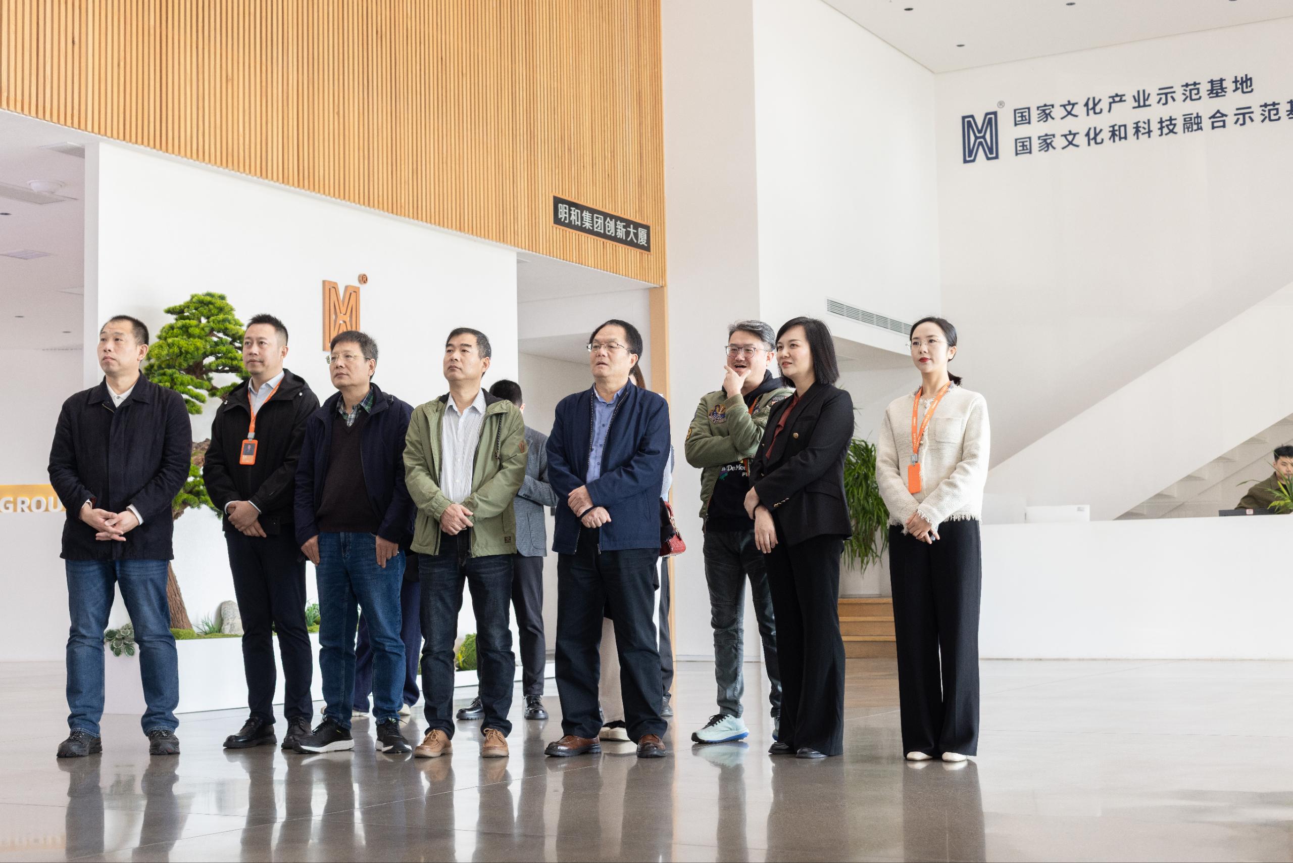 在明和集团总经理刘媛的陪同下,专委会一行详细了解了明和集团的发展历程、产业布局、技术创新、产品研发及成果转化情况。在音视频体验空间与文化装备体验中心,沉浸式领略湖湘文化的绚烂多姿,在明和智造中心,近距离观摩定制化舞台机械等产品的研发与制造,体验新技术赋能文旅产业的创新升级成果。