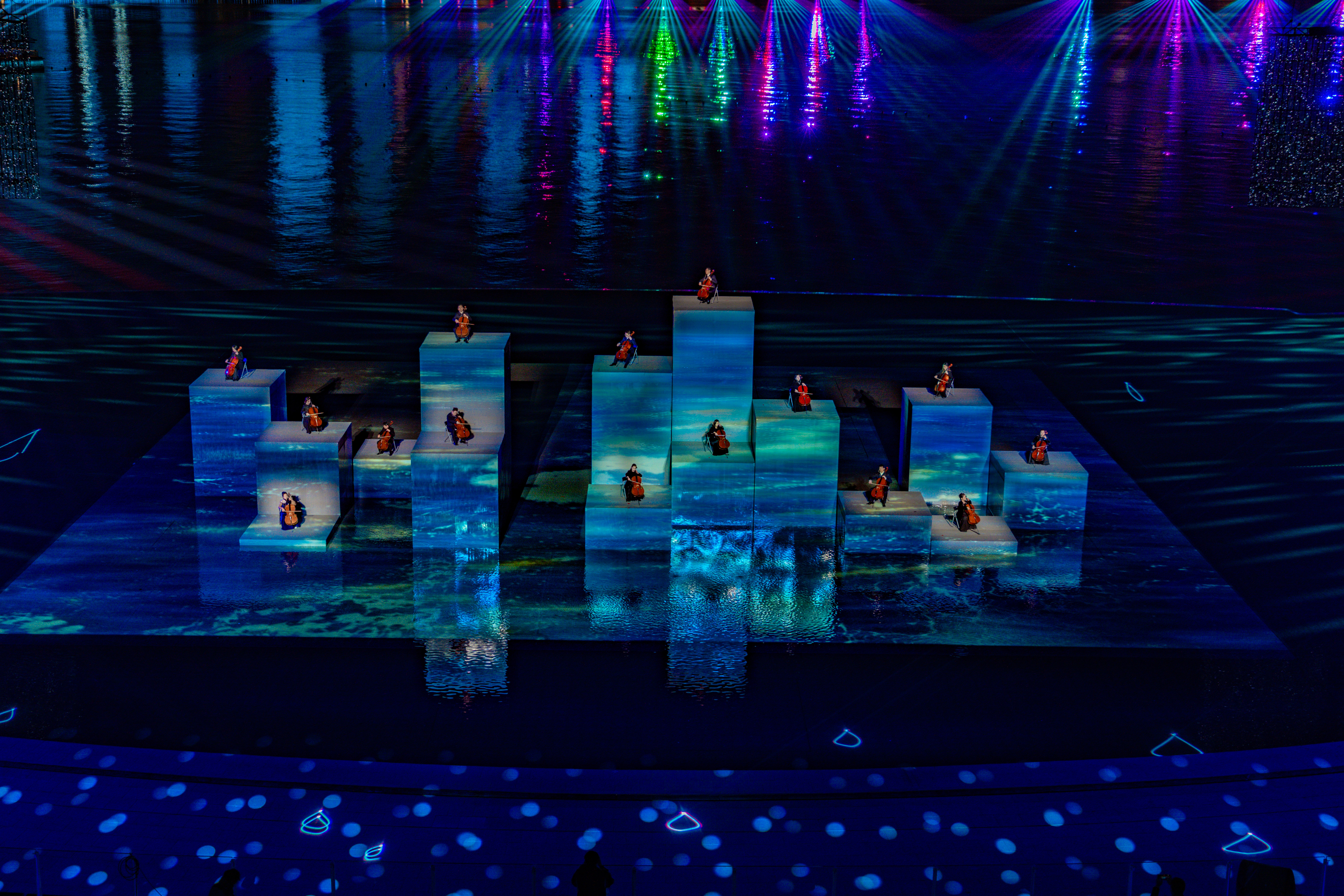 明和集团·北特圣迪以“文化+科技”为创新引擎,凭借硬核技术实力与极致匠心,参与打造了全国最大的户外水上舞台,从技术设计、研发智造、到落地实施的全流程服务。从舞台升降台错落有致的空间美,到“纸舞台”破水而出的视觉震撼,技术始终与节目创意紧密融合,让艺术构想照进现实。