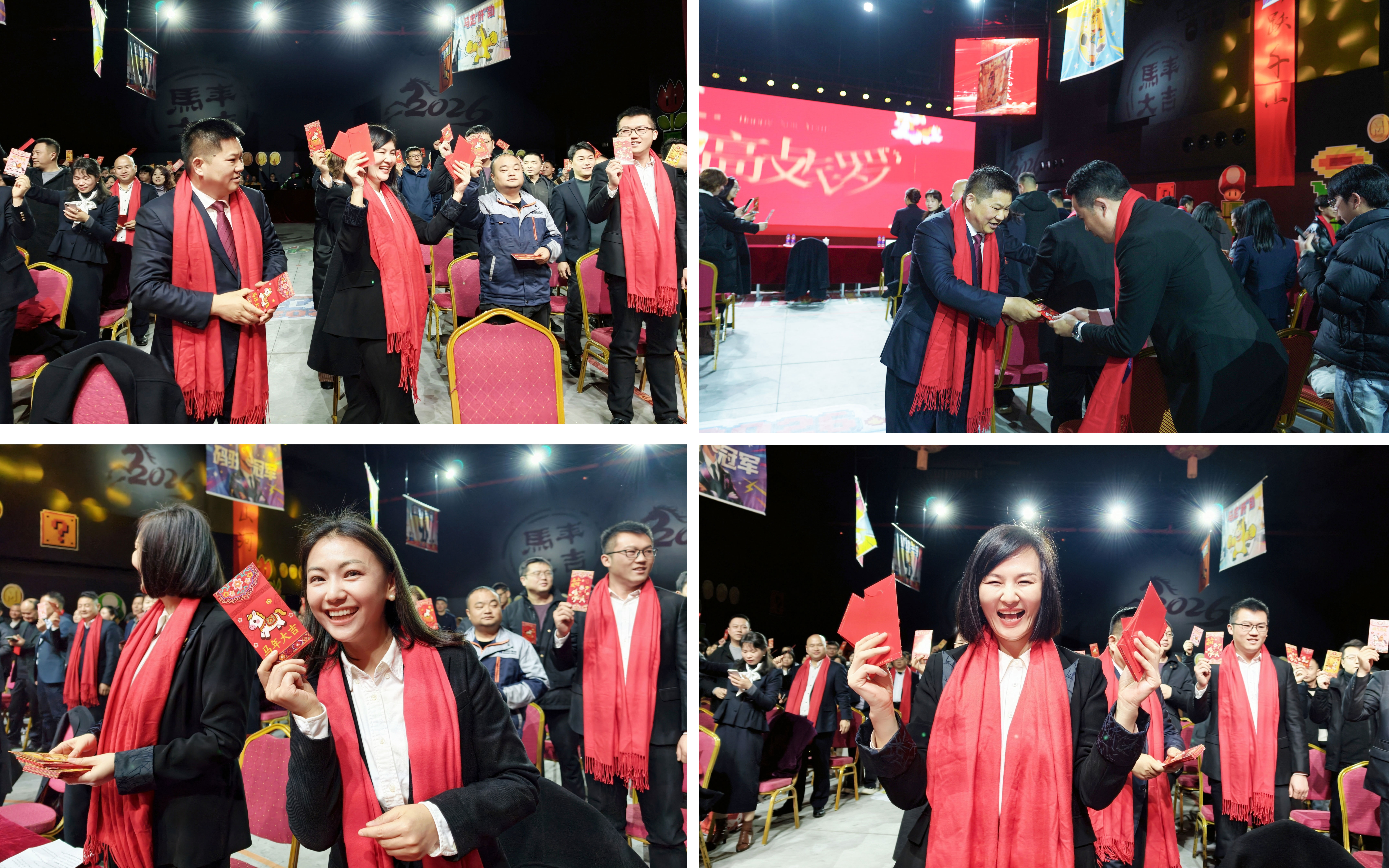 随后,公司高管团队为全体员工派发开门红红包,红包映笑颜,寓意新的一年红红火火、马到红运!