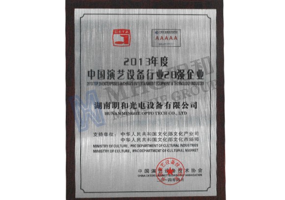 2013年度中国演艺设备行业协会20强企业