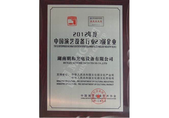 2012年度中国演艺设备23强企业