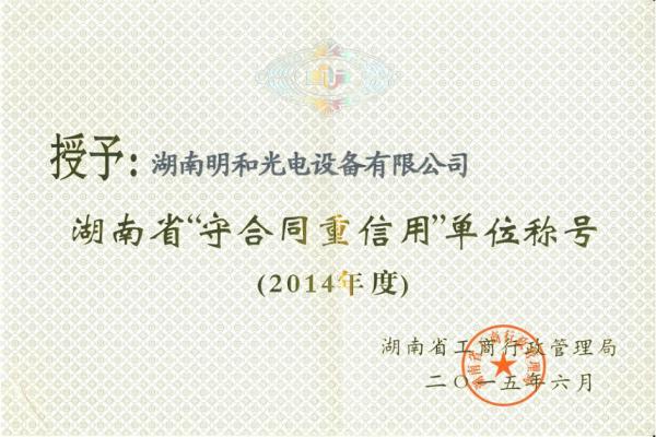 2014年度湖南省守合同重信用单位
