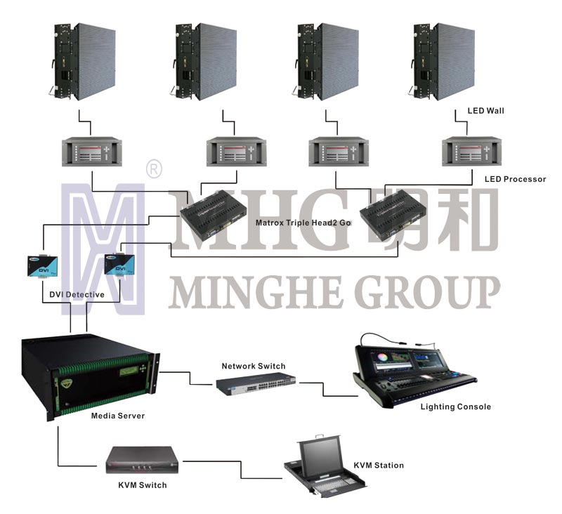 LED电子大屏幕显示系统是集计算机网络技术、多媒体视频控制技术和超大规模集成电路综合应用技术于一体的大型电子信息显示系统,具有多媒体、多途径、可实时传送的高速通信数据接口和视频接口。计算机网络技术的使用使显示信息制作、处理、存储和传输更加安全、迅速、可靠。采用网络系统控制技术,可以和用户的计算机网络联网。系统使用PLC控制技术,实现对系统配电和使用环境完全自动化的监控,使用视、音频控制技术,可以对各种不同的视频和音频信号源的输入进行统一控制和管理。