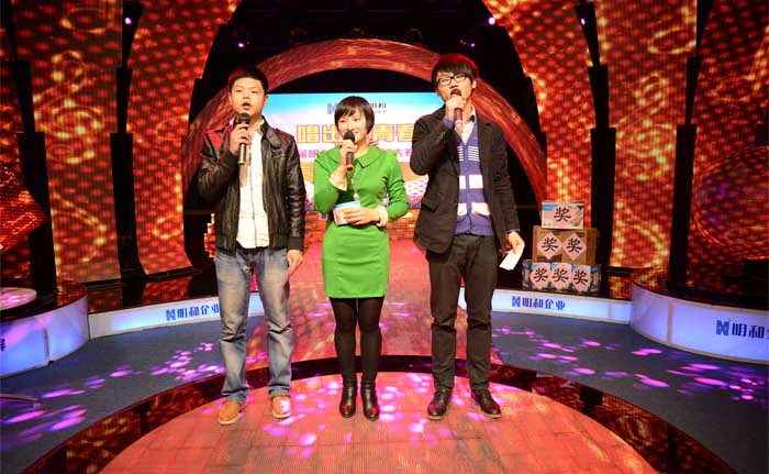 明和舞台上的女声是一道尤其靓丽的风景线~LED屏车间赵璐继初赛的《天下无双》后,再度演绎了张靓颖的一首《画心》;运营部刘群的一首《月满西楼》婉转动听,将观众们带入词中的古典氛围;销售部马溜以一首《夜夜夜夜》博得了大家的热烈掌声!