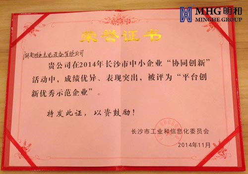长沙市中小企业“协同创新”活动长沙市工信部推出的转型升级系列活动,出资聘请专业团队,为企业提供技术、创新资源,协同多方参与,帮助企业开发新技术、新产品,实现企业的持续、健康、快速成长。在此次活动中,明和集团副总经理常青女士等10人荣获了“平台创新优秀学员”称号。
