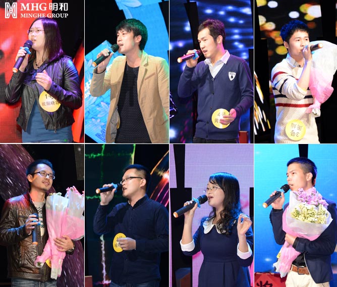 在“明和之声”成功落幕的同时,小编带大家回顾下初赛那些令人难忘的精彩片段——舞台上一个个盛装靓丽、激情亮嗓的明和人让明和文化更添炫彩:销售部李水波粤语演绎的《讲不出再见》,传媒公司田黎明柔情四溢的《夜半小夜曲》,工程公司谢小勇个性嗓音的《天意》,工程公司彭波柔柔抒情的《过火》,国际贸易部的方添玉自信满满的《终身美丽》……选手们或青春火热、或古典优雅,百花盛放,各领风骚!