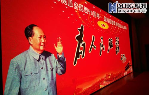12月23日,中央文献出版社、毛泽东养生饮食文化研究会、将军后代合唱团等单位在北京举办纪念毛泽东诞辰121周年活动。竖立在大厅中央的明和集团LED高清显示屏全程助力嘉宾演讲和节目表演精彩绽放,为纪念活动保驾护航。