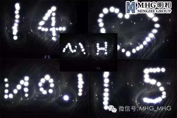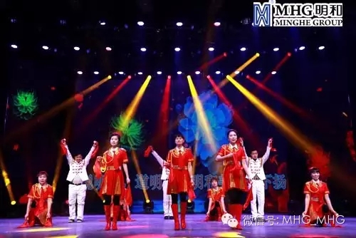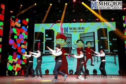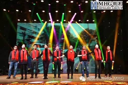 销售团队灯光视觉show创意十足而简练,销售部在构思节目时候,创意很多。最后融合传统皮影戏的形式,每人控制一个小光点。小光点代表着明和人,大家相亲相爱,一起承担,一起分享。通过每一个光影的创意组合呈现2014明和的心路历程,以及2015的发展蓝图。一个个的精彩节目不断将联欢会推向一个又一个高潮。