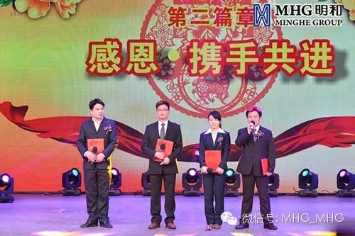 随后年会现场举行了2014年年度优秀员工表彰。优秀员工们在不平凡2014年创新拼搏,奋勇争先,为明和的发展开疆辟土,一个个金灿灿的奖牌代表着一份份荣誉和信任。