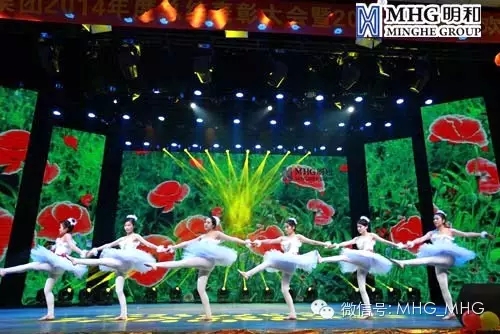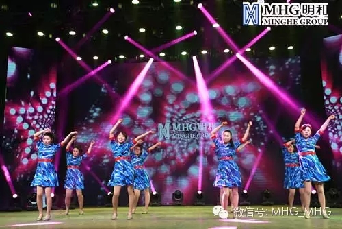 这是一届高规格的的年会。舞台主屏和4个侧屏的LED显示屏面积达100平方米,与近百台LED舞台灯具、多台音箱联合演绎视听盛宴,明和集团高科技的演艺设备和幕后工作人员的努力保障了年会的圆满成功。