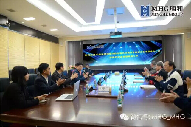 参观完毕,王李荣先生一行前往明和集团多媒体会议室召开沟通交流会。明和集团傅高武董事长向王李荣先生一行介绍了明和集团近年来的经营状况及发展模式,双方就如何开展两岸产业技术的交流及合作进行了深入探讨。技术人员现场为考察组一行演示了由明和集团设计并施工的智能化多媒体会议系统。智能化多媒体会议系统作为明和集团工程系统集成解决方案的全方位体现,集成了目前最先进的多媒体系统设备,偌大一个会议室中的高清显示系统、多模式扩声系统、灯光系统、智能控制系统等八大子系统,均可由技术人员手中一个小小的平板电脑进行无线控制,轻而易举地实现了多种模式的会议场景切换需求,得到了考察组成员的交口称赞。在多媒体会议室所营造出的轻松融洽的商务会谈环境下,与会双方沟通愉快,会议气氛活跃。