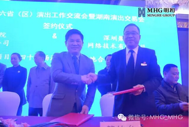 在11月19日的湖南演出交易会上,来自国际国内的演出团体、演出经纪公司、演艺集团、演出院线联盟、演出设备企业和演出行业协会的代表参加交易和签约活动。明和集团董事长傅高武在会上与湖南红太阳演艺有限公司成功签约,双方达成长期战略合作共识。