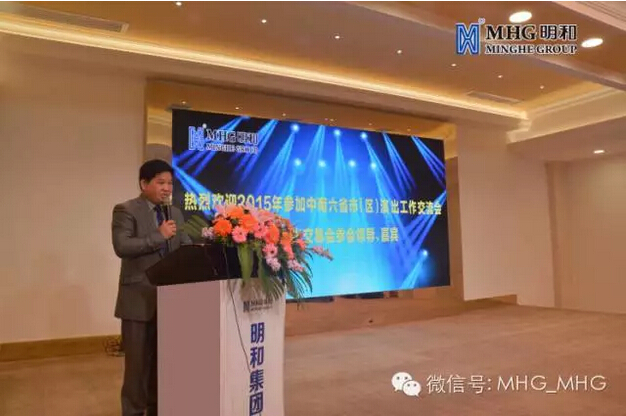 作为第五届湖南艺术节文化创意板块的重要活动之一,2015中南六省(区)演出工作交流会暨湖南演出交易会于11月18日上午在长沙开幕。文化部文化市场司副巡视员傅燕梅女士,中国演出行业协会主席朱克宁,广西壮族自治区文化厅副厅长严霜、广东省文化厅副巡视员顾民强等文化部市场司、中国演出行业协会、中南六省(区)文化厅以及演出行业协会有关领导出席会议。明和集团及来自全国各地100余家演出单位参加了会议。