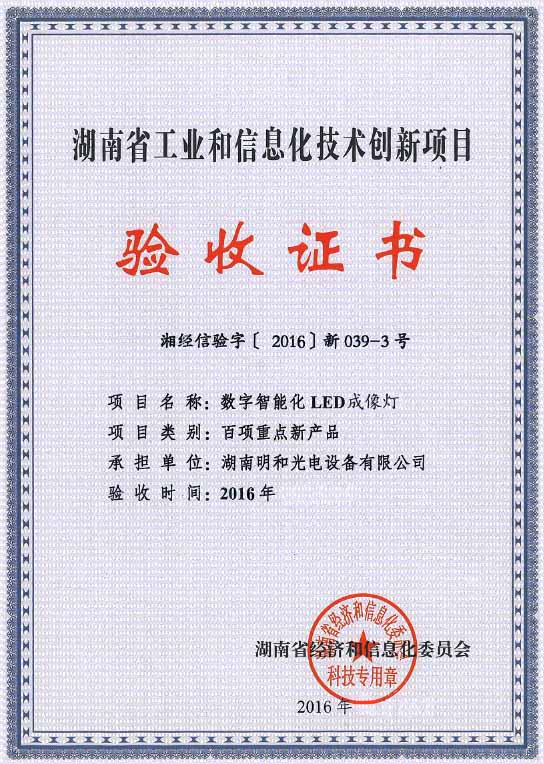 新闻|明和“数字智能化LED成像灯”再次获湖南省经济和信息化委员会2016年度全省工业领域“百项重点新产品推进计划”----重点新产品研发项目立项