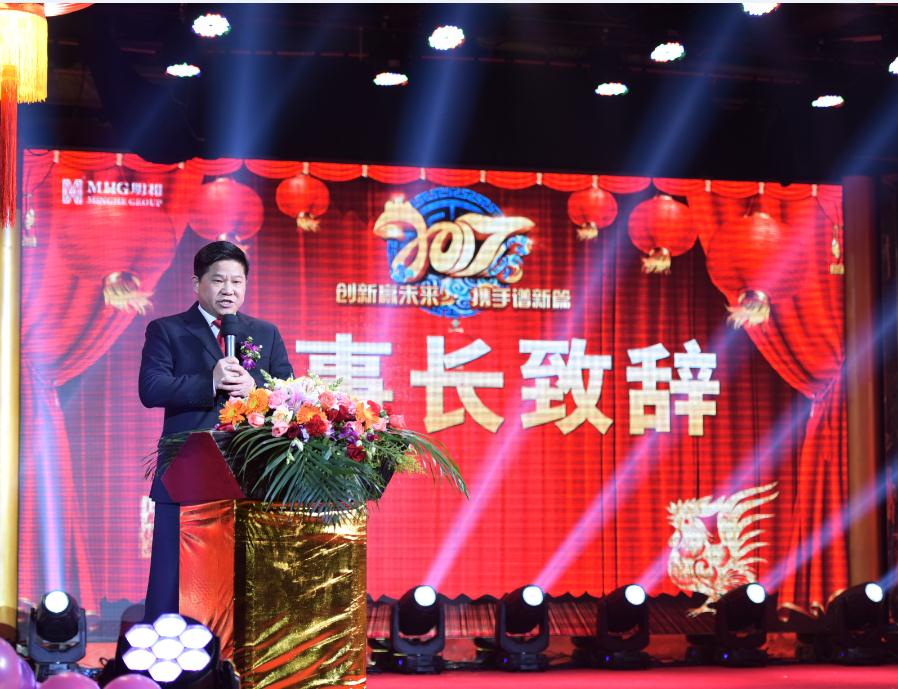 ▲明和集团董事长傅高武先生发表新年致辞