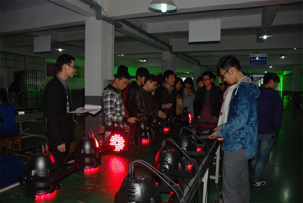 随后,在解说员的引导下,大家来到了公司的展示厅。同学们饶有兴致地倾听解说员对湖南明和光电有限公司及其市场概况、产品性能的介绍。公司技术工程师更是耐心地向同学们讲解了灯光产品知识及市场动态。在现场,明和还给老师和同学们演示了舞台灯和LED显示屏的搭配效果,五彩缤纷的光线和炫丽的舞台引得老师和同学们的拍手叫绝。