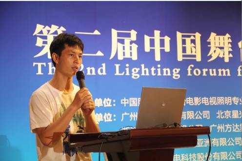 ▲ 北京星光影视设备科技股份有限公司研发部经理陈阔家现场分享《舞台影视LED混色灯具自动化测量与标定系统研究》。