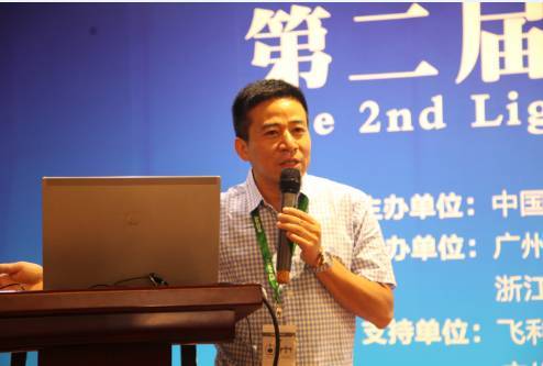 ▲广州市欧玛灯光设备有限公司总经理华正才介绍了LED光源和灯具的新发展。
