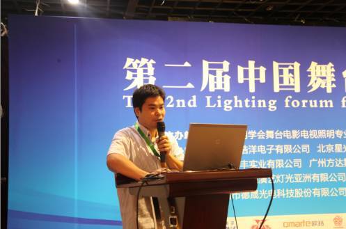 ▲广州方达舞台设备有限公司总工麦石林介绍了LED灯具在电视演播室的应用。