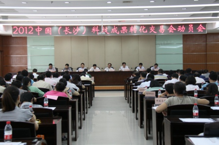 为认真做好2012中国(长沙)科技成果转化交易会(以下简称“科交会”)筹备工作,确保科交会办出更高水准、更响品牌、更实成效,9月10日,2012中国(长沙)科技成果转化交易会动员大会召开。省科技厅党组副书记、副厅长梁秋松,市委副书记、常务副市长张迎龙,市人民政府副市长夏建平,市政协副主席谢明德,长沙高新区管委会主任罗社辉,市人民政府副秘书长刘秋成,省教育厅副处长潘峰等领导出席动员大会。会议由市人民政府副秘书长刘秋成主持。