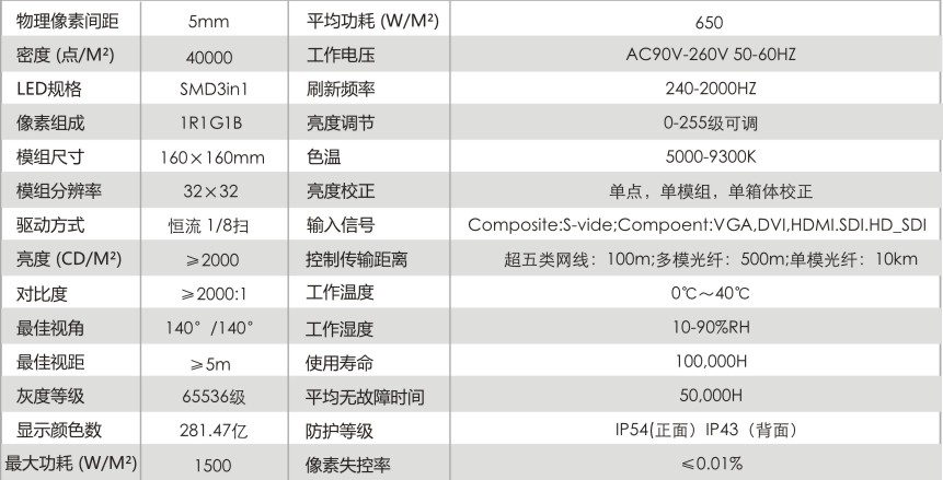 高分辨率:每平方有40000个像素点,在距屏体5米到100米的视觉距离可获得最佳的观看效果,在一定程度上可以和LCD媲美。