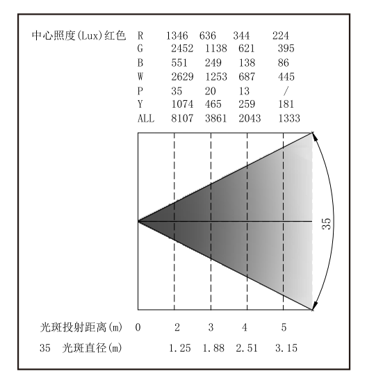 | 颜色(光源) | 红、绿、蓝、白、琥珀、紫 |