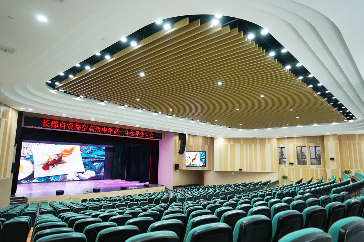 长沙县人民政府与长郡中学合作办学的新创学校,占地面积约405亩。明和集团打造的全套声光视讯系统集成设备涵盖LED显示系统、舞台灯光系统,舞台机械系统、扩声系统、声学装修等高科技手段赋能高质量教育教学创新,打造开放融合、提质增效的教育新生态。