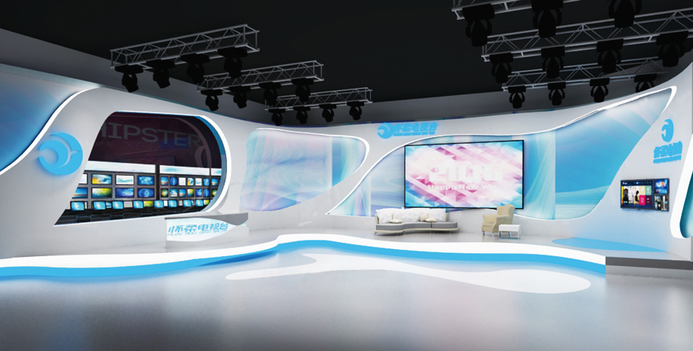 怀柔广电视高清演播室由明和集团打造,该演播厅依据舞美、大屏、灯光一体化的先进设计理念,在空间规划、舞美制景视觉美学、声学处理、空间动线、机位构想与定位、舞美材料合理化等需方要求进行综合设计,以满足演播室的多功能性拍摄用途,为高水准做好新闻宣传工作提供了有力保障!