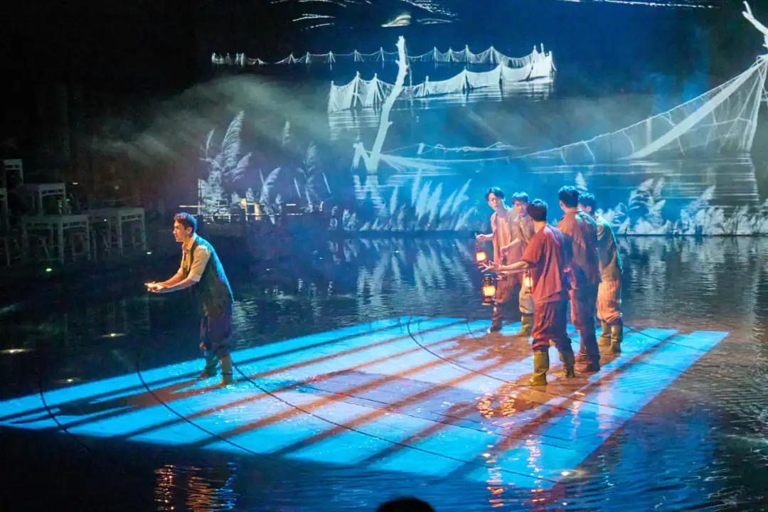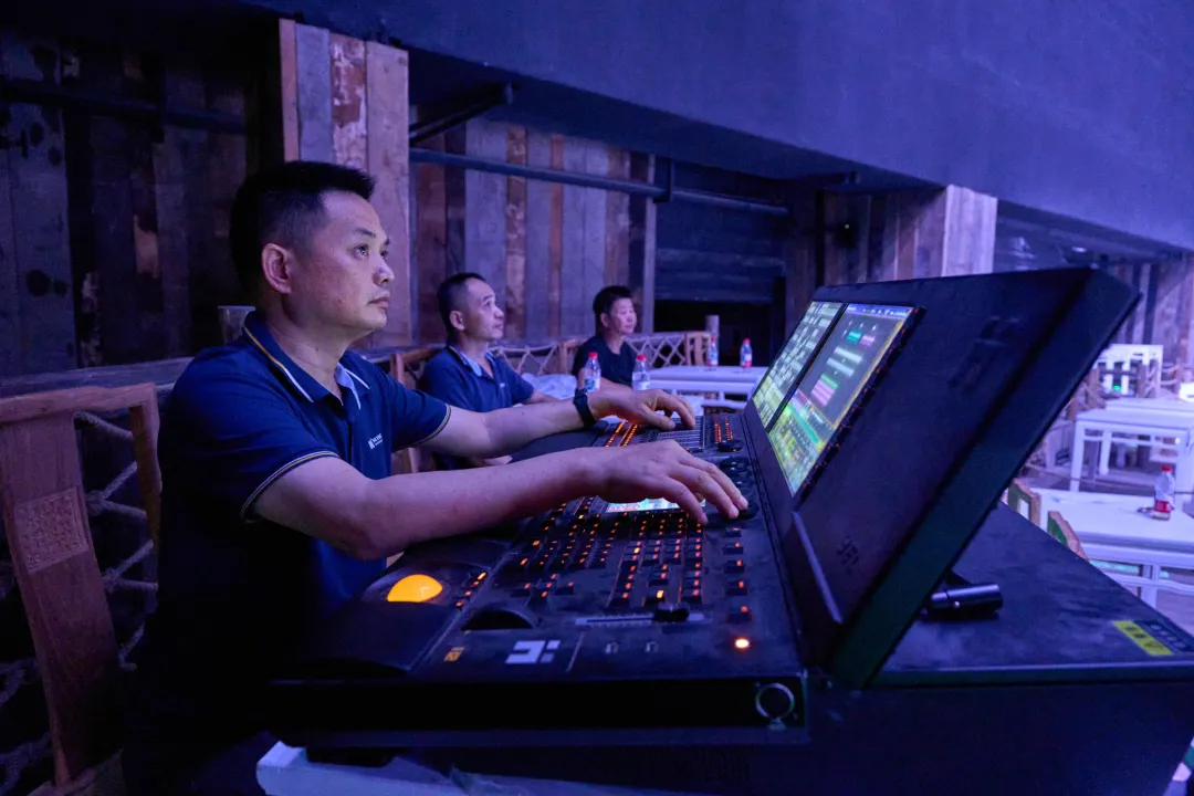 在技术层面,李彦导演团队创新研发数字回旋渔村、潜藏式湖底水景矩阵、多终端可移动数控装置等多项专利和运用技术,构建出270度沉浸投影景深空间。首创移动数控芦苇 、鱼跃式江豚矩阵、光影荷花矩阵等智能动态舞美技术以及智控集成系统,营造“船行莲叶间”的诗意荷塘,再现船载渔民入场到渔女渔夫翩然起舞,以及芦苇苍苍、候鸟翔集、江豚逐浪的生态奇观。明和集团提供全流程技术落地服务。