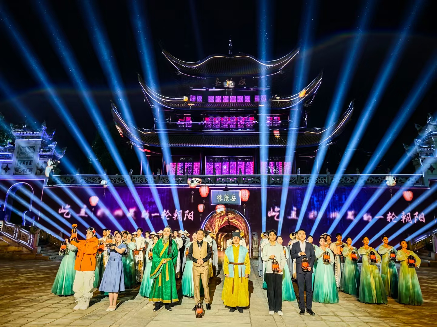 项目通过“4大戏剧场域”与“3个数字化艺术情境”的矩阵设计,将岳阳楼从静态地标转变为动态的情绪剧场。观众们在范仲淹的笔墨间、滕子京的恳切中,感受文人风骨与家国天下的激荡,明和集团为该项目提供创意落地、设备供应及系统集成,为艺术家创造随心所欲的表演空间。