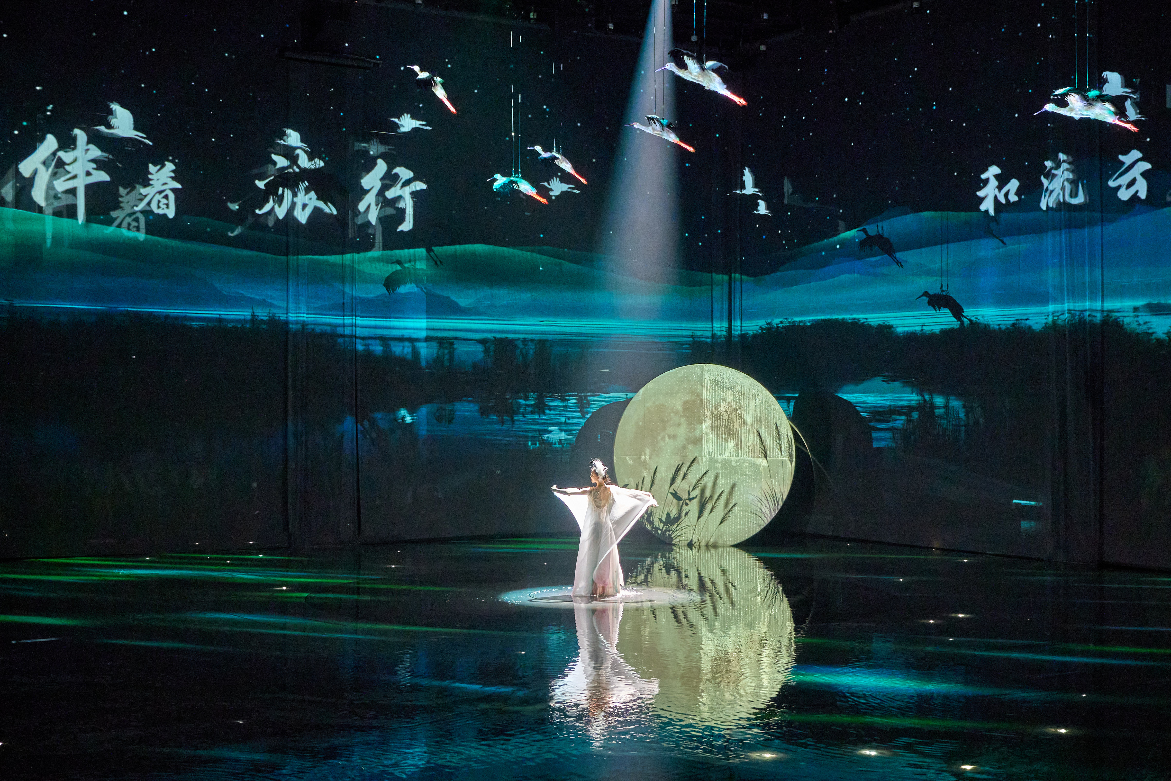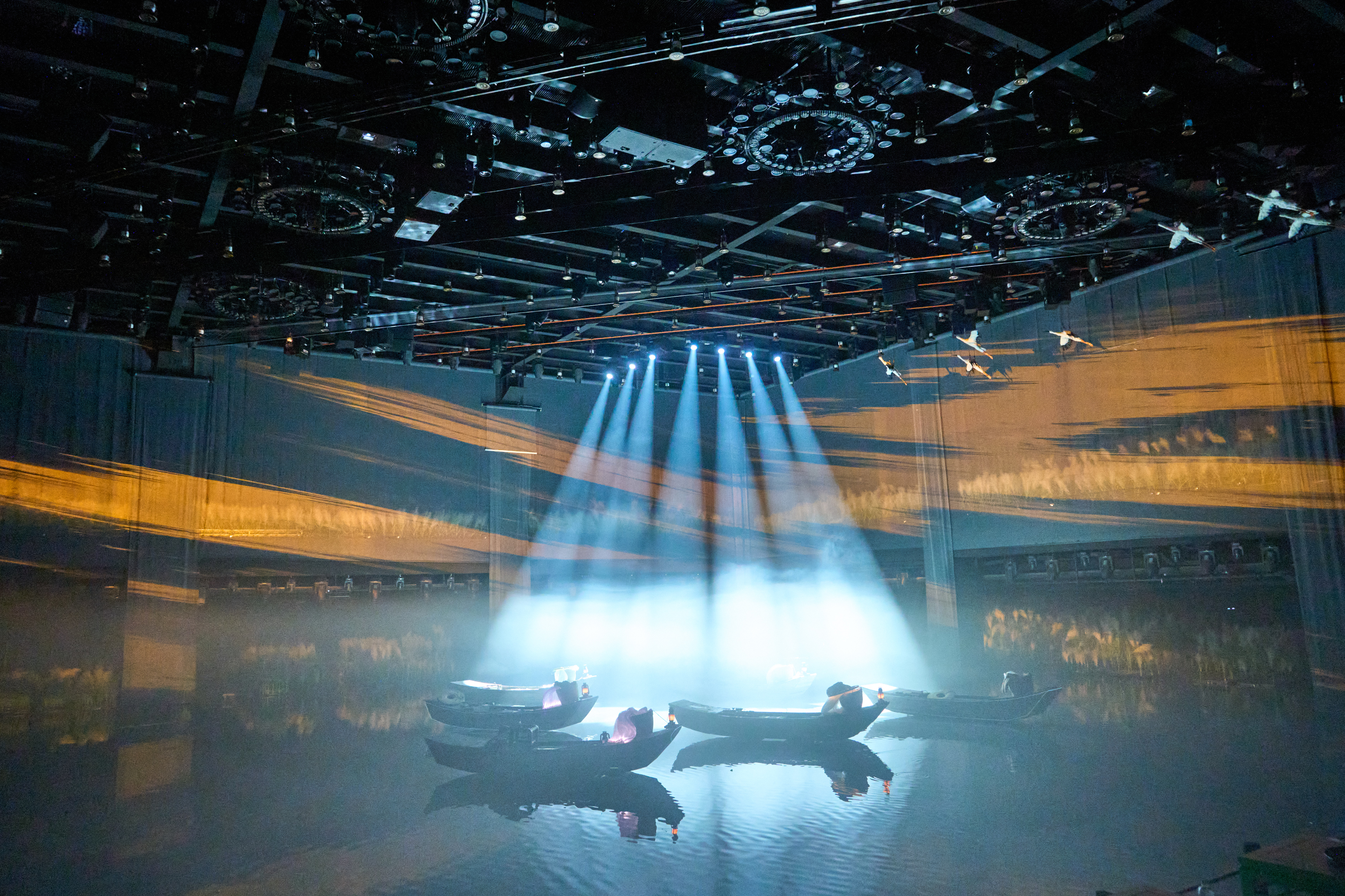 项目构建了“1个荷景剧场,6个分镜剧场,1个水景剧场,1个鹿剧场”的剧场集群,以洞庭湖渔民的真实故事为创作蓝本,生动回溯了从“湖养不住鱼”到“绿水青山归”的生态蝶变,明和集团作为项目总承包方,通过声光视讯系统集成与新媒体艺术的完美融合,为项目提供了从设计、设备、实施到技术支持的全流程服务。
