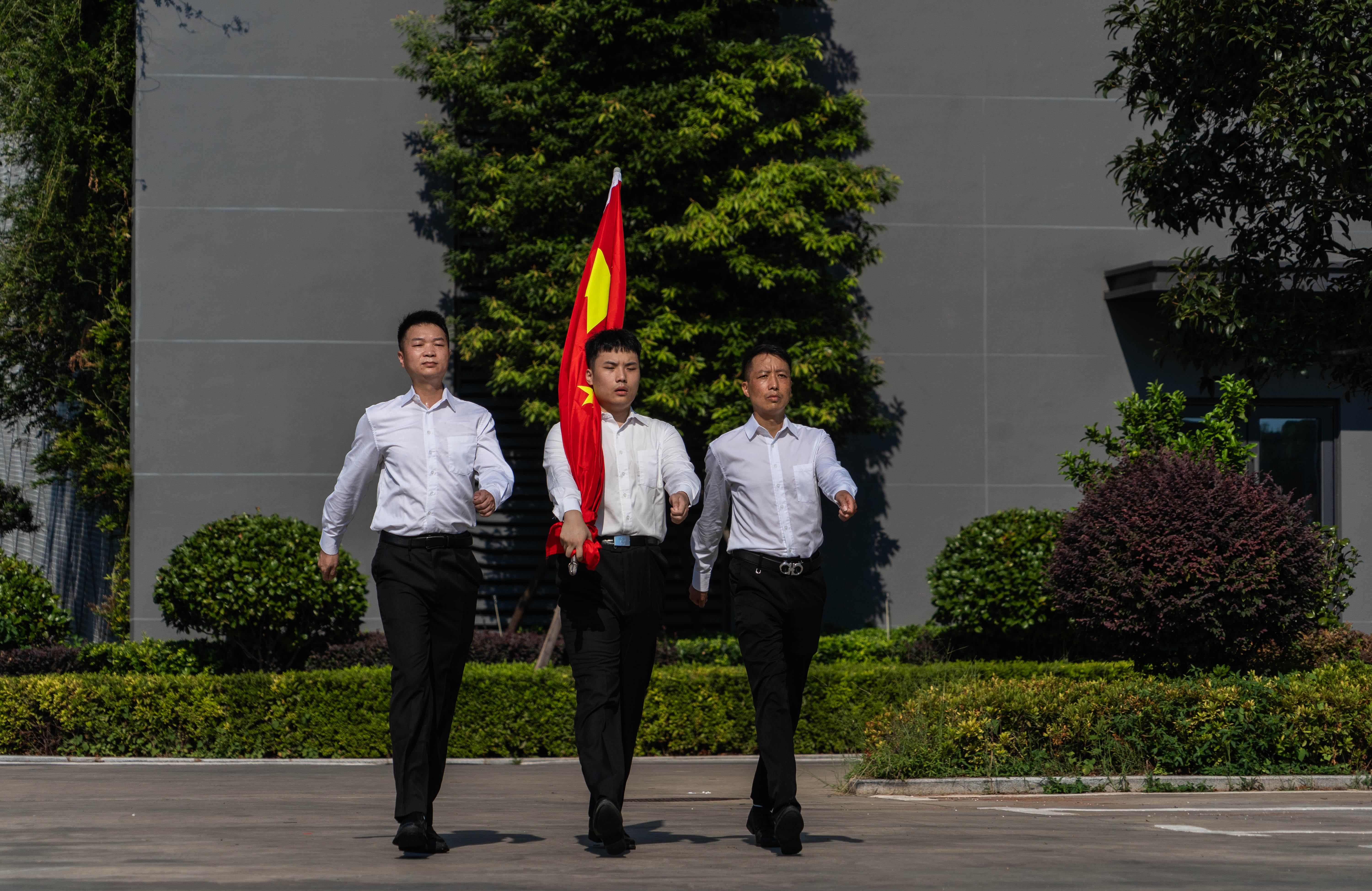 活动伊始,所有参与成员身着整齐工装,身姿挺拔地列队肃立。伴随着庄严雄壮的国歌声,3名护旗手昂首挺胸、阔步前进,迈着坚实有力的步伐护送国旗行至升旗台。在铿锵激昂的国歌声中,鲜艳的五星红旗在全体员工的注目下冉冉升起——那抹红,是革命先烈用热血浸染的颜色,是中华民族不屈精神的象征。