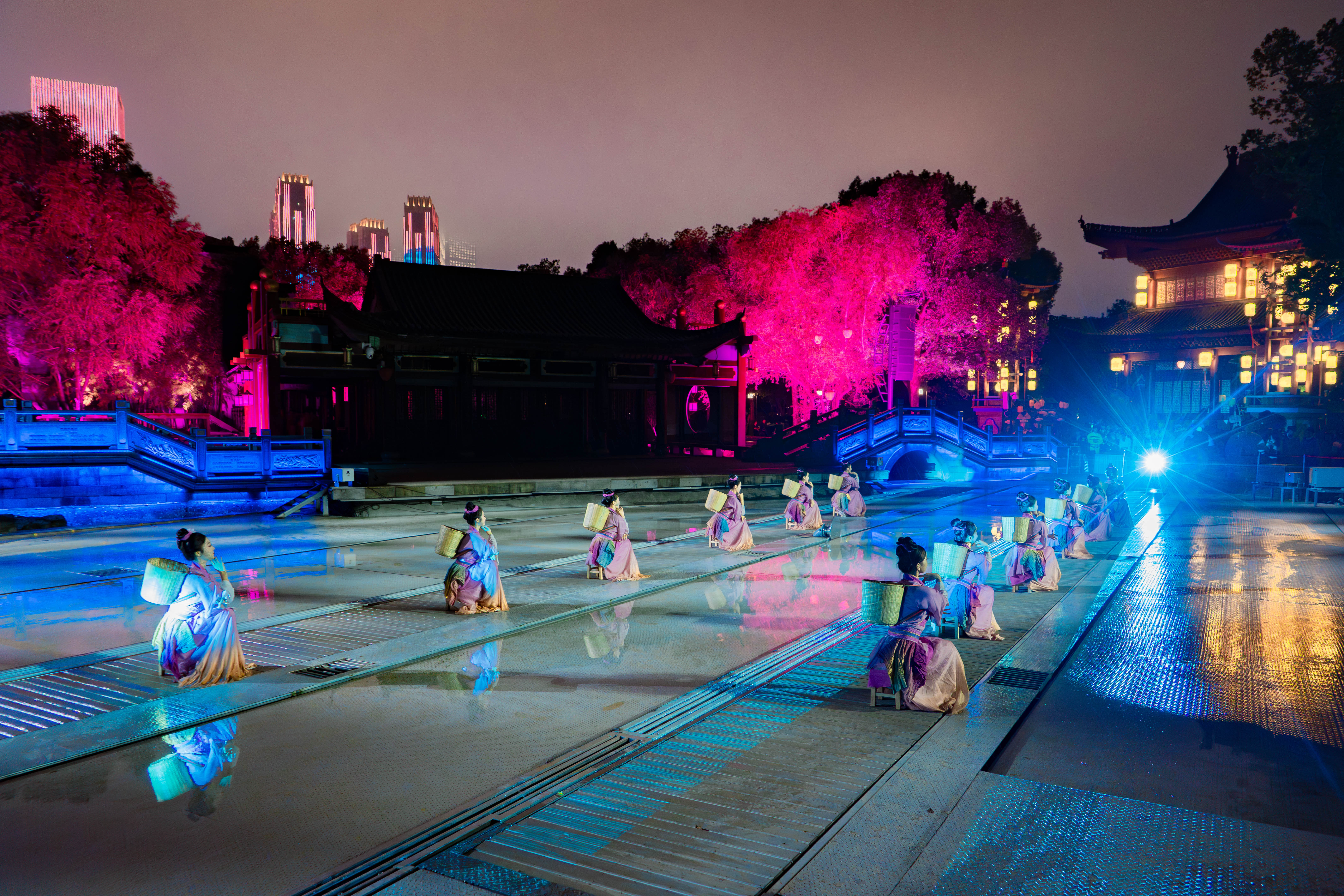 活动期间,由华夏芙蓉文旅倾情打造的“花开橘洲·江天暮雪光影诗画演艺”首次亮相。明和集团以“文化 + 科技”为创新引擎,为该项目提供舞台机械从研发智造、技术设计到落地实施的全流程服务。
