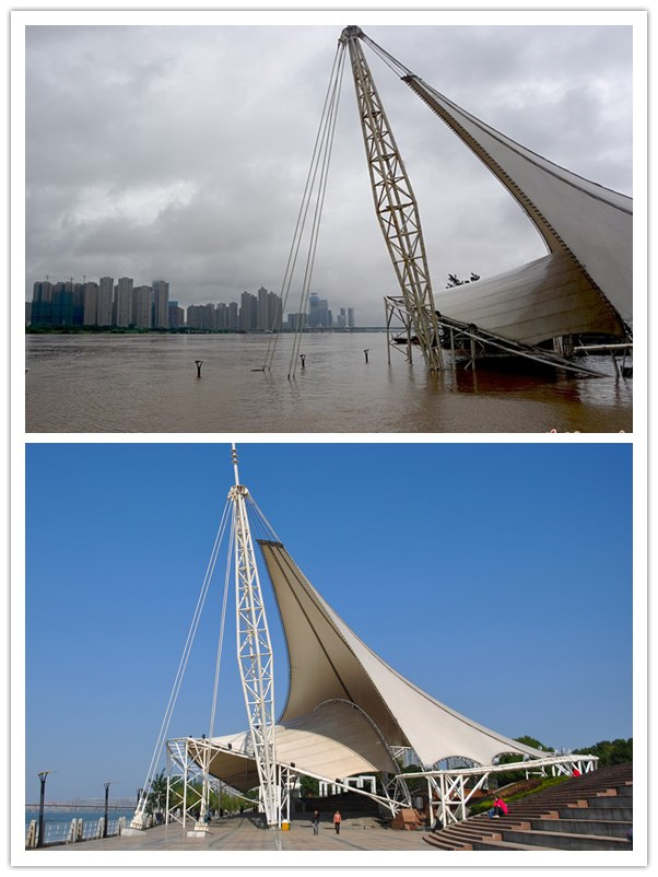 湘江沿江风光带风帆广场——这个开福区群众最喜爱的娱乐休闲场所,在洪水中几乎全部淹没,留下了厚达20余厘米的淤泥,经过持续的清理,现在已然重新焕发生机,洁净如常。