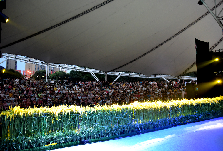 表演过程中,剧中杂交水稻之父袁隆平追求梦想,大爱奉献,勇攀科学高峰的励志形象和故事让现场群众备受感染!