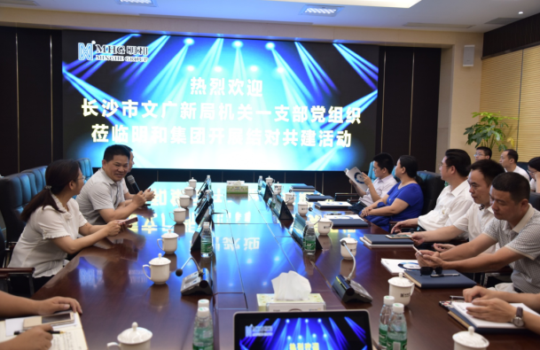 进行了轻松而趣味的新媒体互动体验后,长沙市文广新局机关一支部党组织和明和集团党支部成员在多媒体会议厅就坐,开展结对共建座谈交流会。