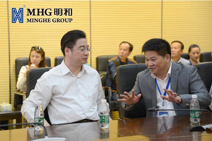 代表团领导对明和智能化的高科技设备表现出浓厚的兴趣,并与傅高武董事长就产业升级、产品优势、行业发展等进行了深入的交谈。