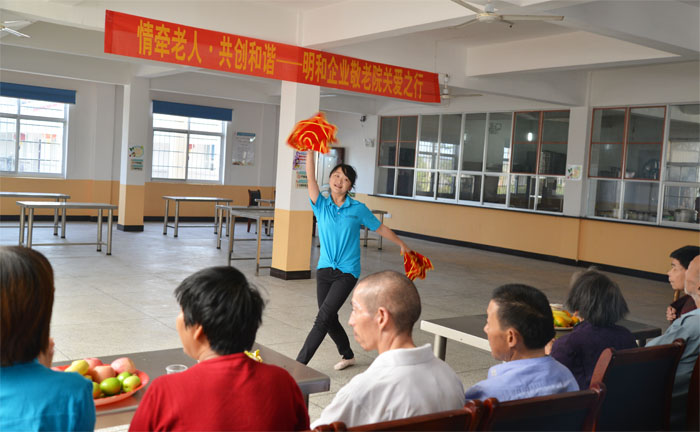 公司志愿者们还为老人们准备了丰富多彩的文艺节目,《夕阳红》、《母亲》……一首首通俗易懂的老歌为老人们送去了真挚的祝福,民族舞、口琴演奏、趣味十足的变硬币魔术更为嗲嗲、娭毑们带去了久违的欢乐!