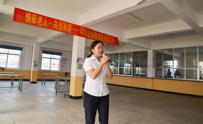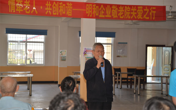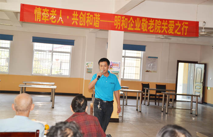 常总走上台前,向在座的嗲嗲、娭毑们送去了真挚的问候和祝福,并表示明和将在爱心回报社会的道路上再接再厉,继续前行,争取用更多的爱心回报社会!