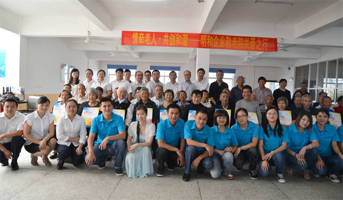九九重阳节,浓浓敬老情!为弘扬中华民族尊老、敬老、助老的传统美德,用爱心回报社会,时值重阳节来临之际,明和企业特组织了一批公司志愿者来到长沙县果园镇敬老院,开展了“情牵老人·共创和谐”慰问活动,为老人们送去丰富的慰问物资和节日的问候!
