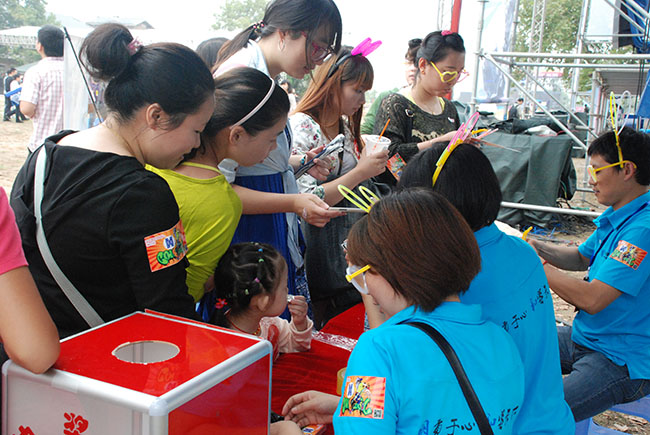明和光电还在橘洲音乐节现场设立了品牌区。扫微信,即可免费领取潮人眼镜、潮人肩章,还有机会抽取高级野外露营帐篷——“欢乐明和送,微信乐橘洲”主题活动开场就吸引了众多音乐潮人们的关注,纷纷拿起手机,扫微信,赢大奖!